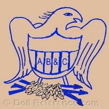 American USA made dolls and toys, antique to vintage; company name begins with A, dates of operation, identifying doll marks, labels, symbols, letters or initials and trade marks when known, to help identify dolls.