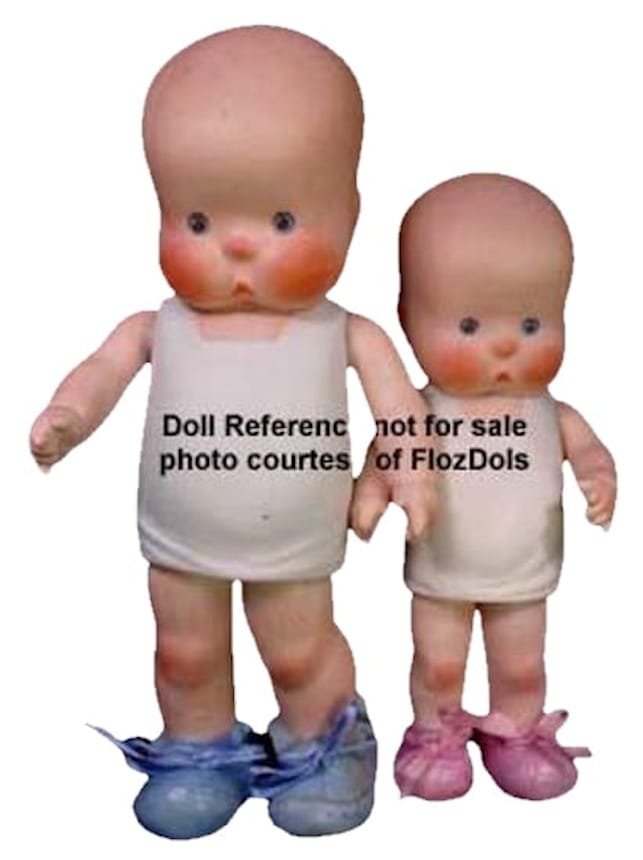 Note: This doll face mold was also sold by the Maxine Doll Company who named her Mitzi and is marked on her back and Averill named her dolls; Jimmie a boy and Dimmie a girl, both dolls are unmarked.