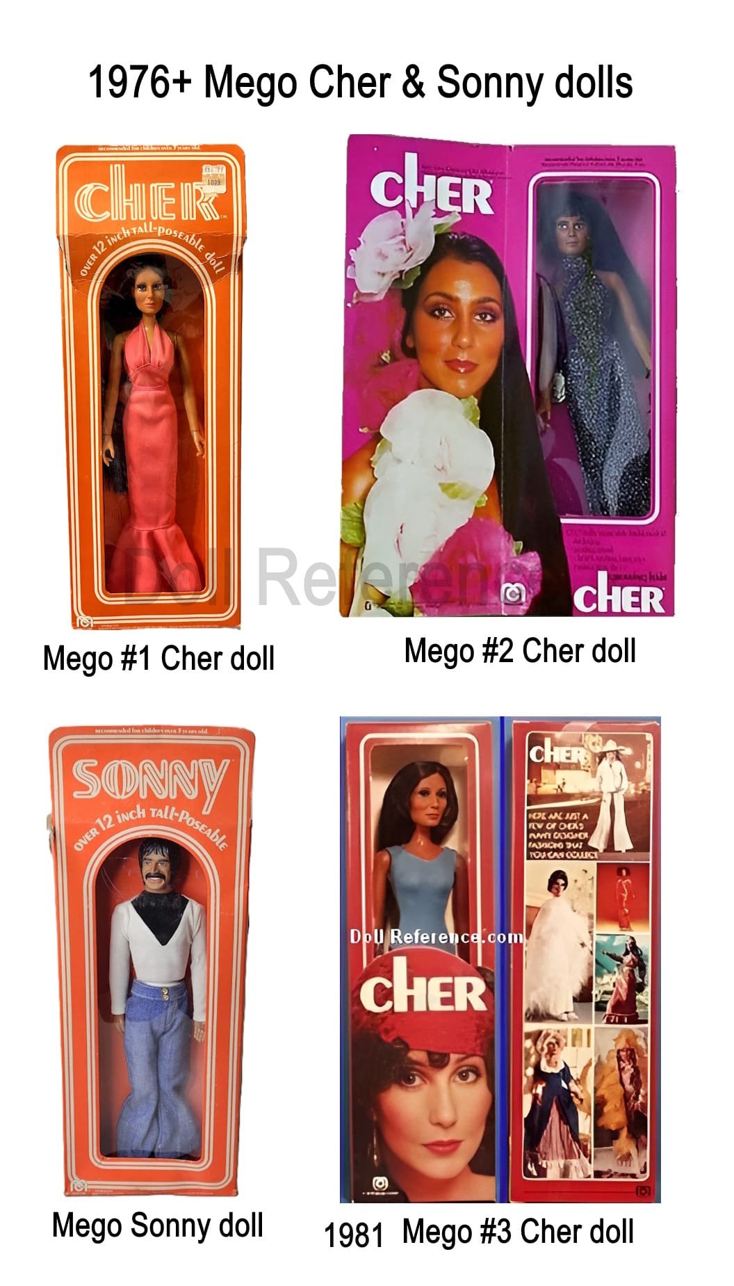 Mego celebrity dolls from the television show “The Sonny & Cher Comedy Hour” in 1971 until 1974, first came to our attention as singers in the 1960s with hits like “I Got You Babe” and The Beat Goes On”, later they went on to entertain us with their TV show with more songs, skits and comedic teasing of one another and all those glorious fashions that Cher wore designed by Bob Mackie.